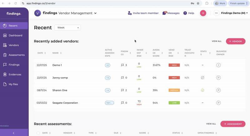 The 'Impact and Analysis information' tab is a pre-screening assessment that defines the Inherent Risk a vendor poses to an organization. The assessment can be customized to suit your requirements.